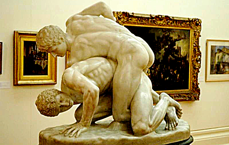 A marble copy of The Wrestlers in the Uffizi Museum in Florence. Image via Wiki CC.