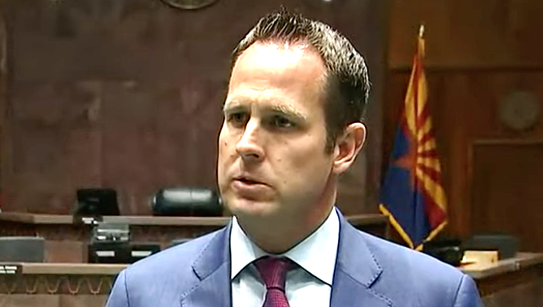 Republican Pro-Tempore Speaker Travis Grantham, above, described her behaviour in a video posted to YouTube as “sinister” and “nonsensical”.