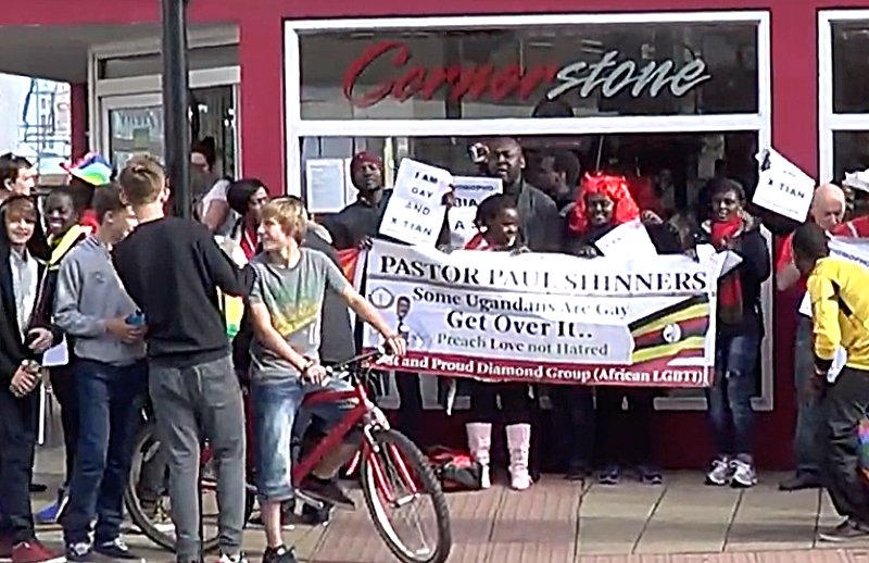 In 2014 I got wind of the fact that the evangelical owner of Cornerstone Café in St Neots, Cambridgeshire—Paul Shinners, above— had traveled to Uganda where he stood on a stage at a National Day of Prayer event and spoke in favour of country’s proposed “Kill the Gays” Bill.