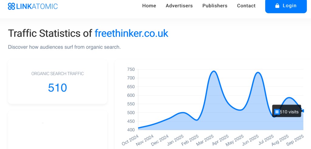 Today, The Freethinker is lucky to get around 17 visitors a day! (Source: Linkatomic.)
