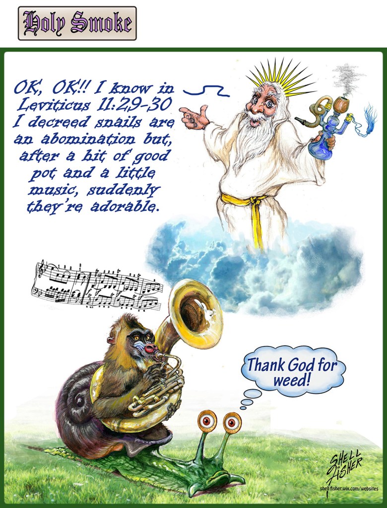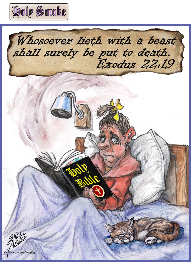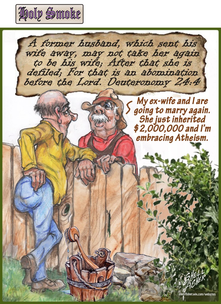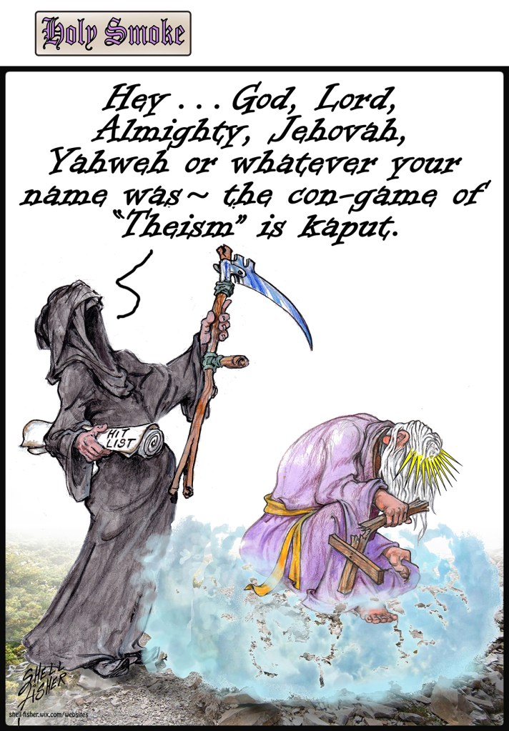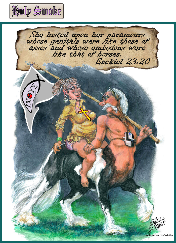 This a collection of “blasphemous” illustrations created for The Freethinker by renowned Californian artist Shell Fisher when I was editor.